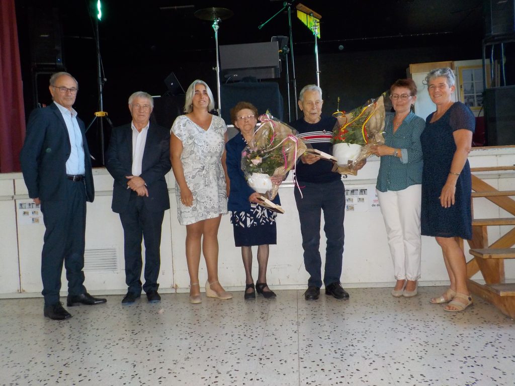 Un repas, préparé par le traiteur local Branche a été servi par les conseillers des communes. Cette journée est toujours attendue, car elle est l’occasion de joyeuses retrouvailles et de reparler du bon vieux temps. Tout est mis en œuvre pour satisfaire cette respectable population, avec une animation assurée par Cindy et Gérard Piccioli, qui de sa belle voix a fait chanter et danser nos aînés. Cette année, ce sont, Mme Colette Bourgeois de Feuges née en 1933, (90 ans), et Mr Robert Guyot de Charmont né en 1927, (96 ans) qui ont été les doyens de la journée, mis à l’honneur en recevant des mains des élus, une composition fleurie et des chocolats et chaleureusement applaudis.