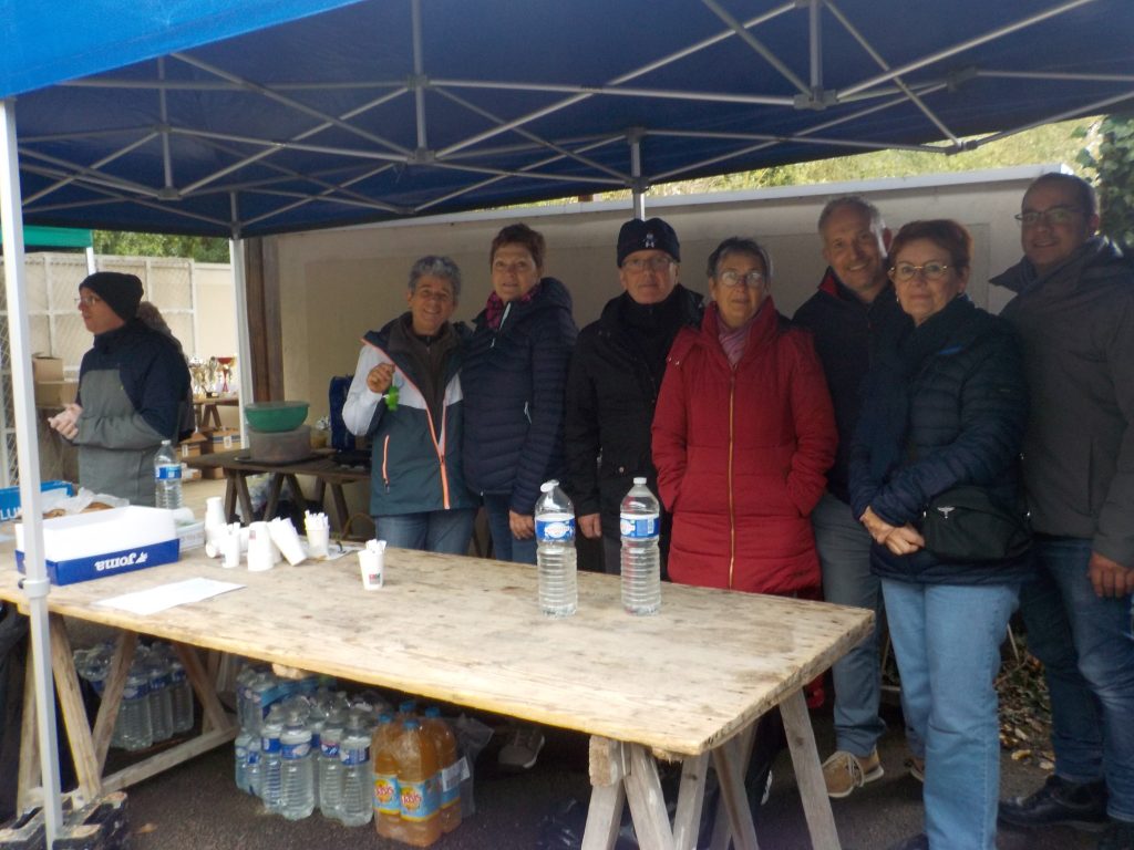 Sur le pont depuis 9 h00, ils ont tenu un stand et toute la matinée, par une météo incertaine et compliquée due à la tempête Domingos, ils ont restauré et réchauffé les quelques 280 coureurs inscrits. Une boisson chaude, ainsi qu’eau ou jus d’oranges ont été offerts aux participants, et ils n’ont pas hésité à confectionner une quantité non négligeable de croque-messieurs, sans oublier le vin chaud. Des porte-clefs peluches étaient proposés à la vente. Ces actions iront, dans leur intégralité, grossir la caisse du Téléthon.